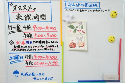 ◆診療時間◆平日 AM9:00~12:00 , PM3:00~8:00土曜 AM9:00~PM1:30★平日は午後3:00~5:00と午前中がオススメ 午後6:00以降が混雑傾向★土曜はお昼頃がオススメ